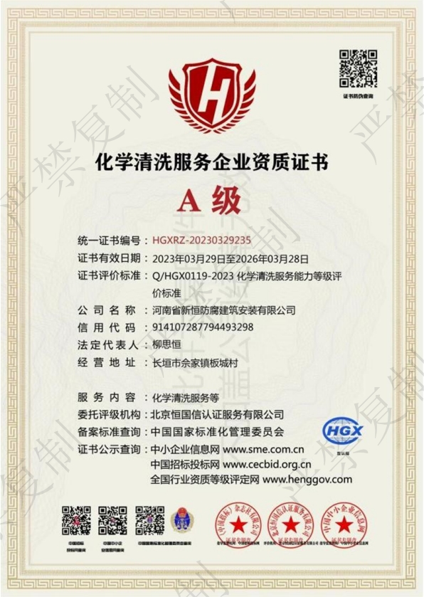 化學(xué)清洗服務(wù)企業(yè)資質(zhì)證書